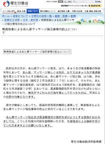 今厚生労働省でも、無資格者によるあん摩マッサージ指圧行等の防止が呼びかけられております。