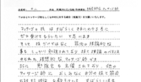 山下様はアスリートとして、常にお体の状態に気を配っておられ、毎回、専門的な筋肉の説明も熱心にメモをされています。今では、レースの前後に全身の筋肉調整のためお越しいただいておりますが、お怪我をされないよう、頑張っていつまでも走り続けてくださいね。